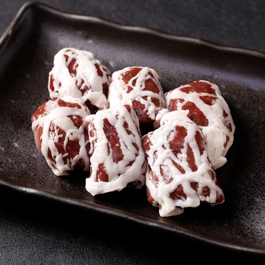 This isn’t just ordinary liver. Fresh beef liver is cut into bite-sized portions and carefully wrapped in pork caul fat (ami-abura).