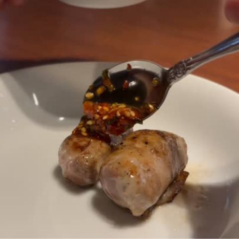 This allows the caul fat to become crisp and golden, while the liver inside cooks gently, staying rare and silky. The result: crispy outside, melting inside. Be careful not to overcook-it will lose its juiciness.