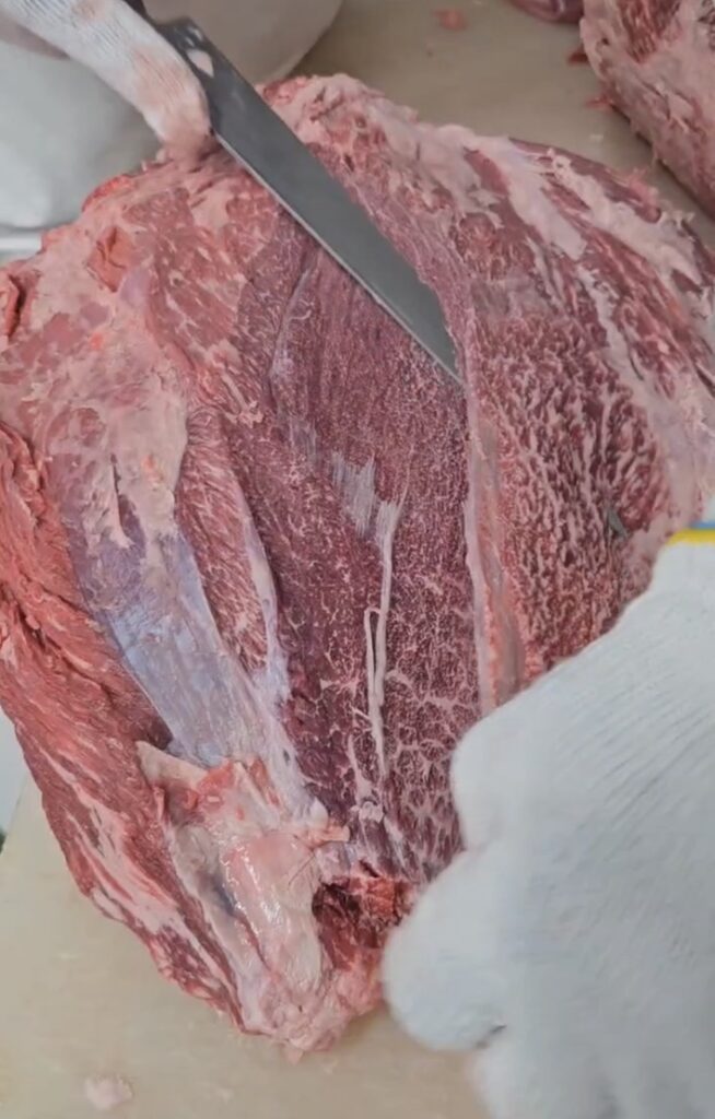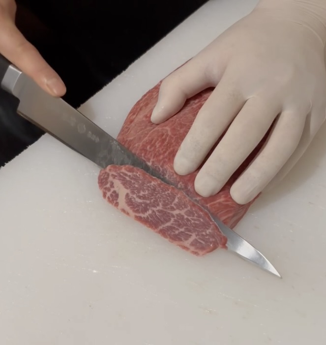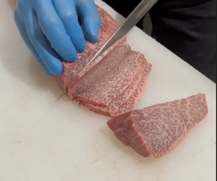 - Tomosankaku: The most marbled and elegant section. Soft, delicate, and naturally sweet with a beautiful visual pattern of fine fat.