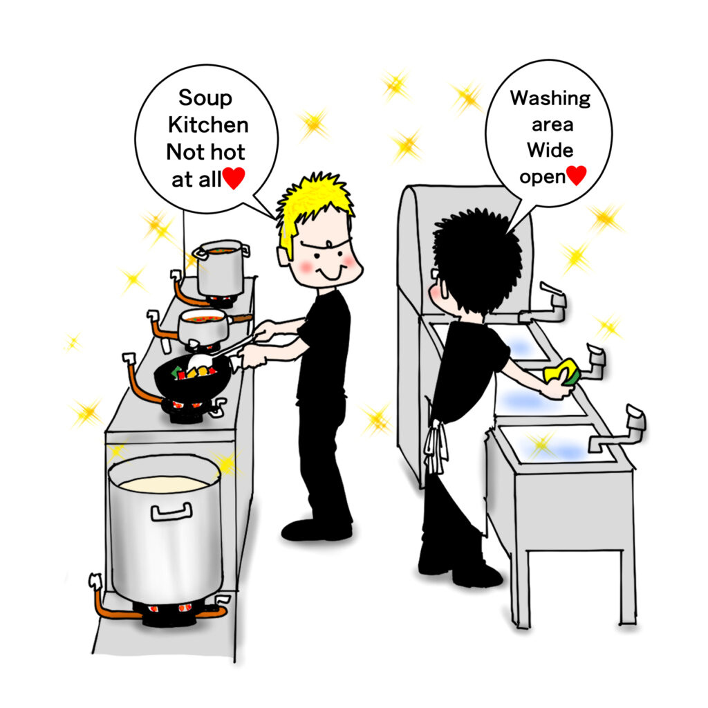 The kitchen is now spacious, and we can even light charcoal fires inside the restaurant,