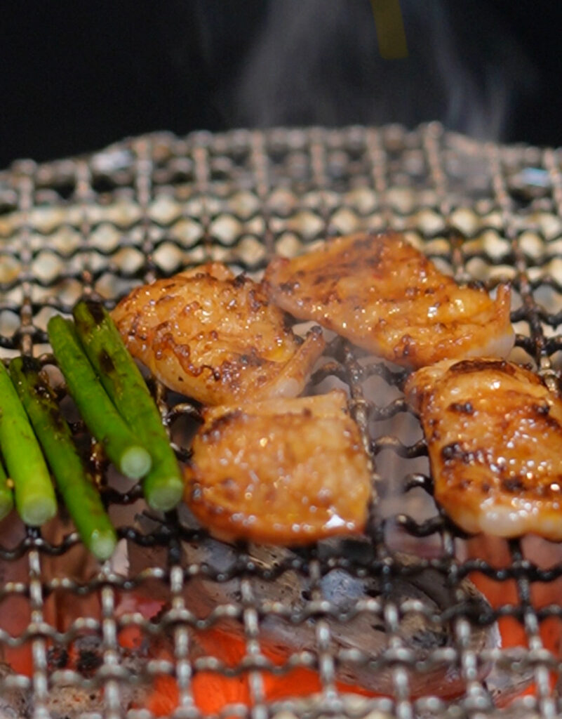 When Marucho plumps up and gets a beautiful grilled color on the surface, it is a sign that it is ready to eat. Bring it to your mouth while it is piping hot, and enjoy the marriage of bursting fat and the savory aroma of the charcoal fire.